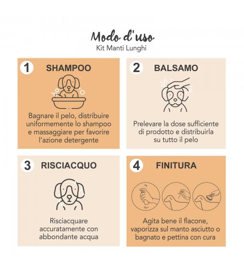 Dog shampoo specific for longer and knotted coats, restructures and strengthens thanks to Rice proteins and phytoceramids extracted from Sunflower seeds. Quaternized Keratin, Vitamins C + E + Panthenol and Ginkgo Biloba extract nourish the hair by strengthening it from the root.