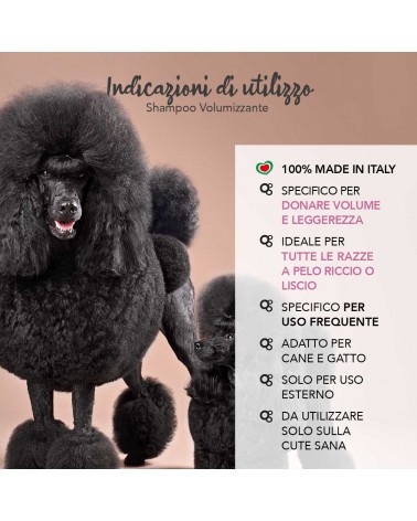 Specific cleanser to give volume and lightness to straight or curly coats