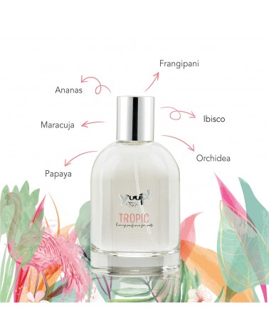 Intense notes of Pineapple, Maracujá and Papaya combined with the inebriating essences of Frangipani, Hibiscus and Orchid.