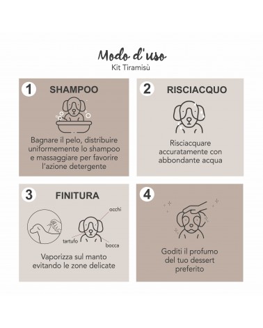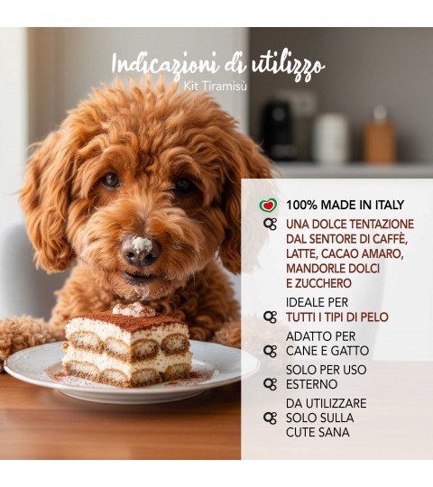 Shampoo and perfume kit for dogs and cats with the delicious scent of Tiramisù