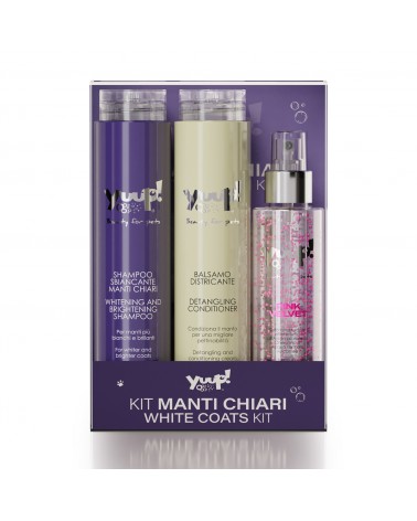 The ideal Yuup! ritual for clear and white coats. The selection of products perfect to enhance and revive the whiteness and, at the same time, prevent and protect against yellowing, for a healthier and brighter hair day after day. Each kit consists of: