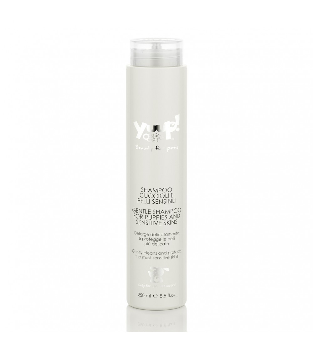 El champú para cachorros y pieles sensibles Yuup! es ideal para nuestros amigos peludos. Solo para uso externo y apto únicamente para piel sana.