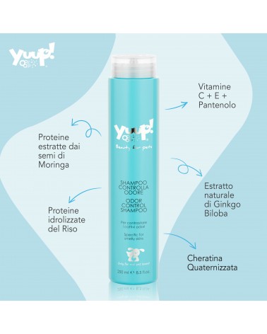 El champú control de olores Yuup! es ideal para perros y gatos. Solo para uso externo y apto únicamente para piel sana.