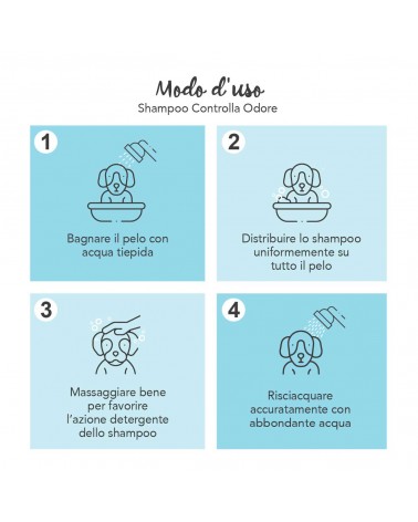 Mojar el pelaje con agua tibia y distribuir el producto de manera uniforme por todo el manto, evitando ojos y mucosas. Masajear bien para favorecer la acción limpiadora y luego enjuagar cuidadosamente con abundante agua.