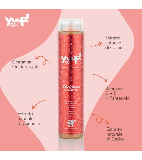 El champú Christmas Edition es un producto ideal para nuestros peludos, adecuado sólo para uso externo y para ser utilizado exclusivamente sobre piel sana.