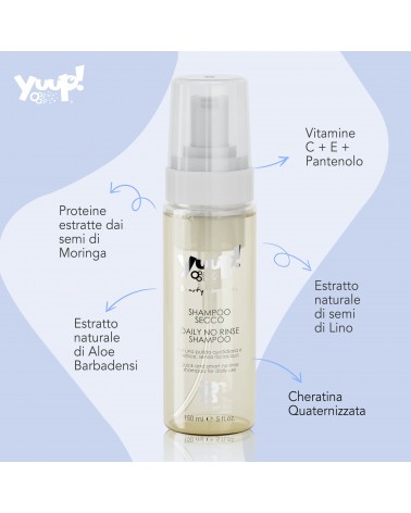 El Champú en Seco Yuup! es un producto ideal para nuestras mascotas, apto solo para uso externo y para utilizar exclusivamente sobre piel sana.
