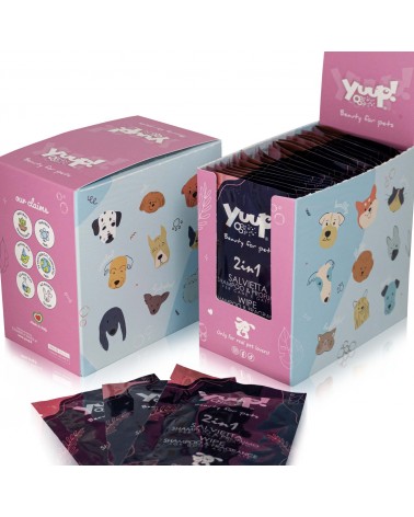 Pack ahorro que contiene 20 toallitas desechables 2 en 1 Champú y Perfume, para una limpieza práctica y eficaz, donde y cuando quiera. Las toallitas, envueltas individualmente, conservan toda su eficacia y están siempre perfectamente listas para su uso, para limpiar y perfumar el pelaje. Cada toallita está impregnada en una solución de champú de acción instantánea y sin aclarado para perros y gatos.