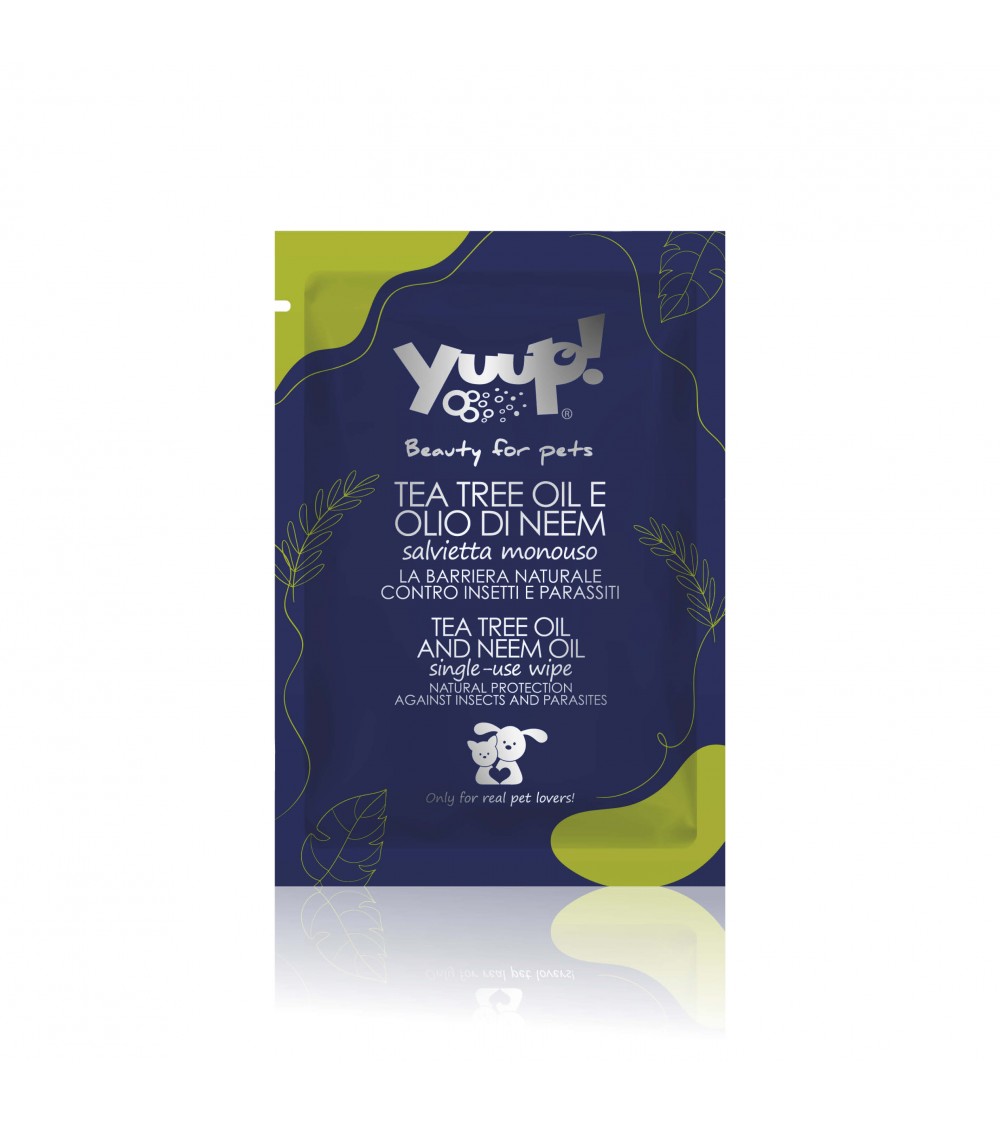 La toallita monouso de Aceite de Árbol de Té y Aceite de Neem Yuup! es un producto ideal para nuestros amigos de cuatro patas. Solo para uso externo y exclusivamente sobre piel sana.