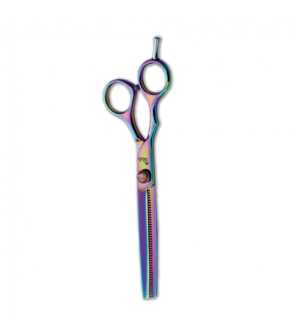 Tijera dentada 44 dientes de Acero Inox y revestimiento de Titanio. Empuñadura para zurdos.