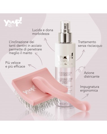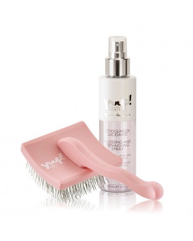 El Kit de productos e instrumentos para el cepillado cotidiano, manteniendo el pelo de nuestra mascota libre de nudos, sano y luminoso; contiene los siguientes productos: