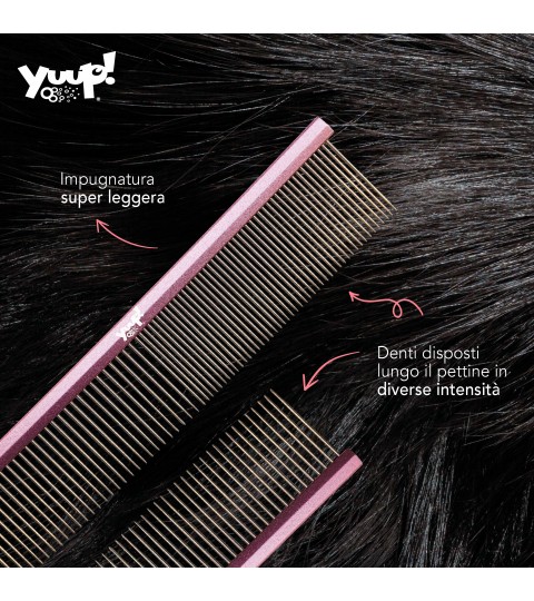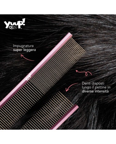 Questo pettine professionale è studiato per soddisfare le esigenze dei proprietari di animali e dei toelettatori più esigenti. Grazie alla sua impugnatura in alluminio ultraleggera, offre un comfort eccellente anche durante sessioni di toelettatura prolungate, riducendo l’affaticamento della mano e del polso. La struttura del manico, realizzata per garantire una presa sicura e stabile, facilita l’utilizzo del pettine su diverse aree del corpo del vostro amico a quattro zampe.