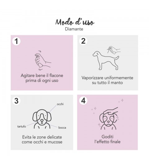 MODO D’USO: agitare bene prima di ogni uso, quindi vaporizzare a piacere sul manto.