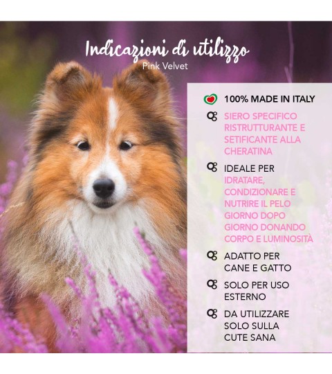 Il siero spray ristrutturante Pink Velvet è un prodotto ideale per i nostri pet, adatto soltanto per uso esterno e da utilizzare esclusivamente sulla cute sana.