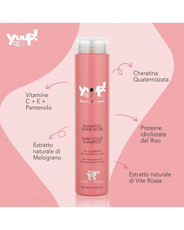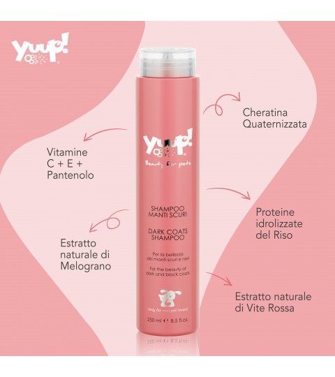 Lo shampoo per i manti scuri Yuup! è un prodotto ideale per i nostri pelosetti, adatto solo per uso esterno e da utilizzare esclusivamente sulla cute sana.