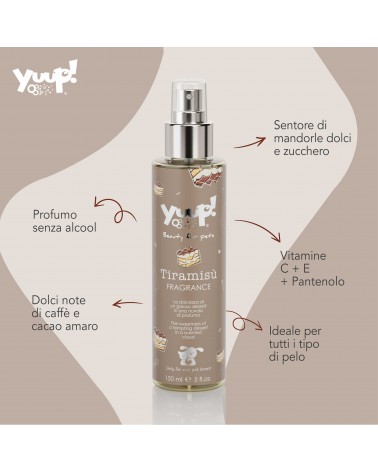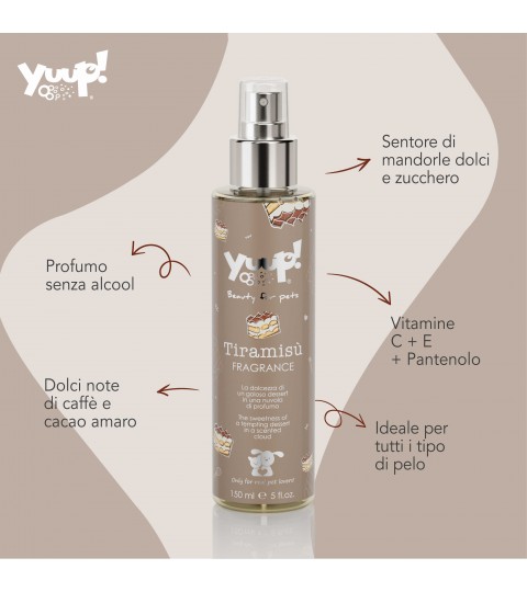 Il Profumo al Tiramisù Yuup! è ideale per la cura dei nostri amici a quattro zampe. Solo per uso esterno. Utilizzare esclusivamente su cute sana.