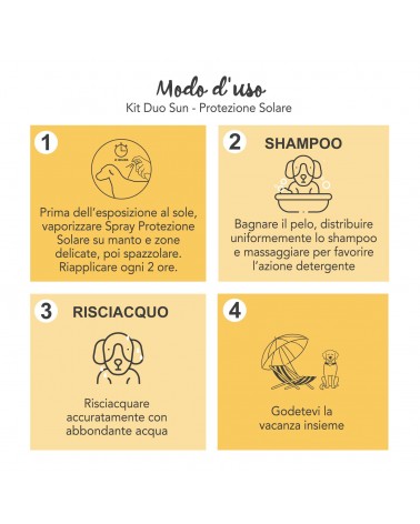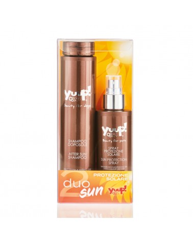 Il Duo Sun Yuup! è un prodotto ideale per i nostri amici a quattro zampe, adatto solo per uso esterno e da utilizzare esclusivamente sulla cute sana.