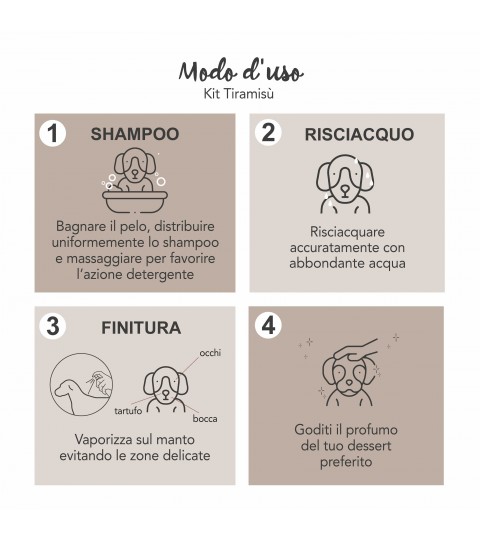 Kit shampoo e profumo per cani e gatti al delizioso aroma di Tiramisù