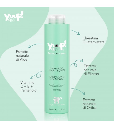 Lo shampoo per manti ruvidi Yuup! è un prodotto ideale per i nostri pelosetti, adatto solo per uso esterno e da utilizzare esclusivamente sulla cute sana.